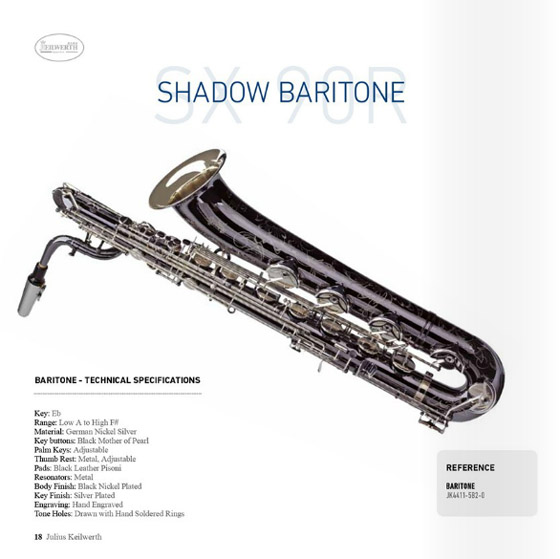 SX90R SHADOW 萨克斯揉合了镍银合金材质的优点,配以镀黑镍表面处理,镀银按键和全管身雕花,创造出令人耳目一新的风格和别树一样的完美声音。