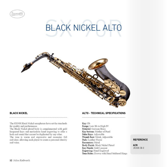 KEILWERTH提供多种材质和表面处理的萨克斯,以满足不同音乐品味的音乐家的需要,因此,音乐家们都可以从中找到能完美配合个人风格的萨克斯。