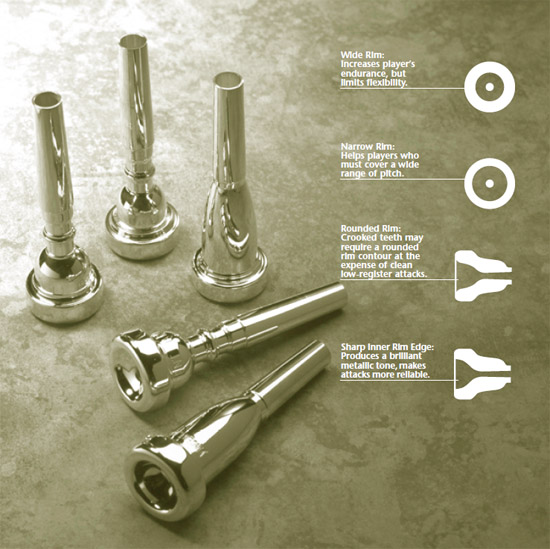 杯口大小及深度对音色十分有影响。较小而浅的杯口则有助于吹奏出明亮及高音域的音色;而较大而深的杯口有助于吹奏出沉稳厚重的音色,不过,这亦需要花费较大的气力来控制,但是一般古典乐演奏者都会选用。