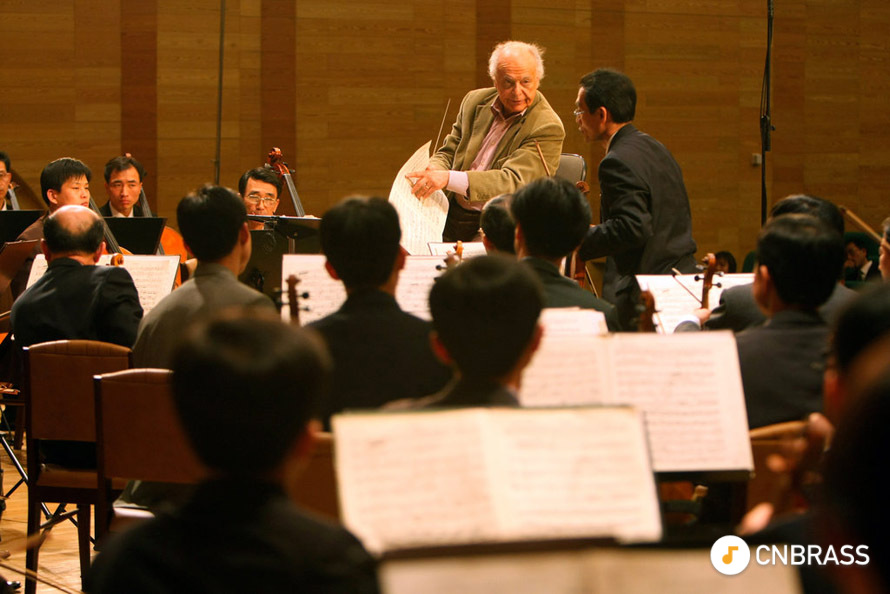 马泽尔在平壤与朝鲜国家交响乐团排练