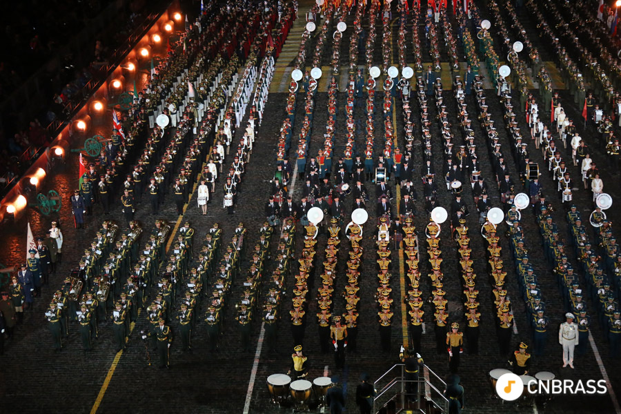 9月5日至13日,在莫斯科红场举行的“斯帕斯钟楼国际军乐节”上,各国军乐团联合演奏《胜利日进行曲》,纪念反法西斯战争胜利70周年。