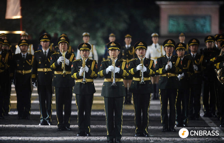 9月5日,在俄罗斯首都莫斯科,中国人民解放军军乐团在国际军乐节上表演。