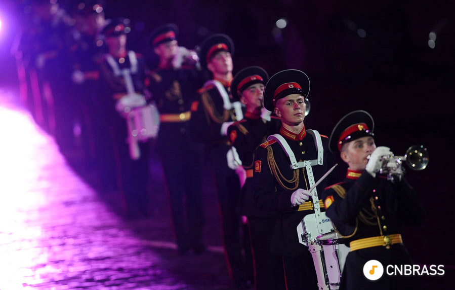 9月5日,在俄罗斯首都莫斯科,俄罗斯总统卫队仪仗队在国际军乐节上表演。