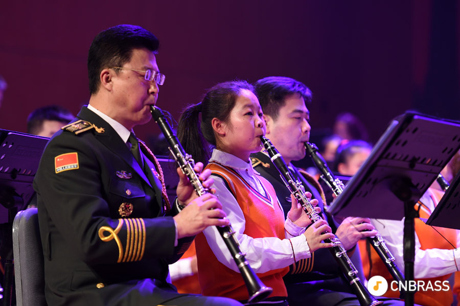 军乐团演奏员和扬帆管乐团孩子们共同演出