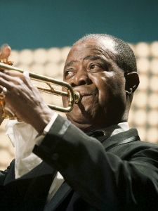 提起爵士音乐,人们最先联想到的人,很可能是一位具有小丑般形象的,绰号叫做Uncle Satchmo(书包嘴大叔)的,活泼可爱的小人物。他是一位声音沙哑的歌手,手中常常拿着一支小号。他以新奥尔良爵士乐风格,在迪克西兰爵士乐配曲下,演奏结构简单、富有戏剧性的作品。这个人就是路易斯·阿姆斯特朗。