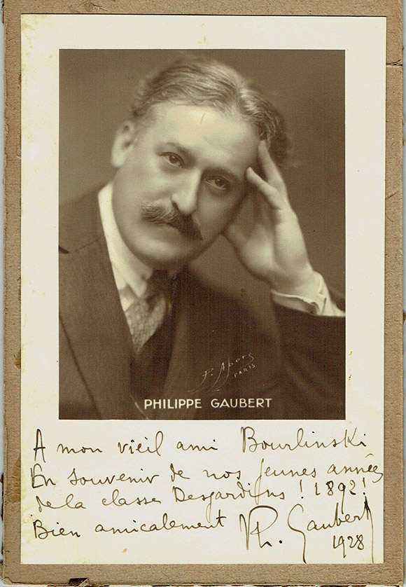 Philippe Gaubert 于1879年7月5日出生在Cahors。他的父亲也是个杰出的音乐家,给了他基础的音乐背景。他七岁的时候来到巴黎,很快的就被送去和Taffanel的父亲学长笛,1890年时他成为Taffanel的学生。1894年,他15岁,获得了音乐院的长笛首奖。他跟随Raoul Pugno学习和声学,随后也跟Xavier Leroux学习,并和Charles Lenepveu学习作曲。1903年时他获得赋格首奖、1905年获得罗马大奖的第二奖。虽然他没有指挥经验,但却在1904年十二月(25岁)受邀担任Societe des Concerts的助理指挥。考试内容包括贝多芬第九号交响曲的终乐章、舒曼第一号交响曲中诙谐曲、圣桑的第二号钢琴协奏曲的第一乐章(钢琴:Ricardo Vines),还有从林姆斯基高沙可夫的幽默曲和Ernest Guiraud的「狩猎」两首小品当中抽出一首。Gaubert抽中Guiraud的作品。当时有两位候选人竞争这个助理指挥的职位:「Gaubert先生,知名的长笛家」以及Tracol。