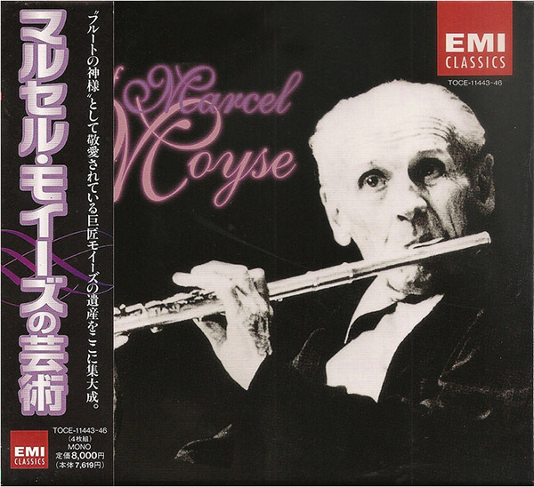 Marcel Moyse的录音不多,大部分是早年的录音,而且大作品很少,只有Mozart的两首长笛协奏曲再加一首长笛和竖琴协奏曲。pearl出版过一系列的Marcel Moyse录音,其中有两张Great Flautists里收录了部分录音,一张Flute Fantastique 收录了小作品,还有一张Marcel Moyse演奏Mozart收录Mozart的三首有关长笛的协奏曲。这些唱片都已经绝版很久,只能看看封面缅怀一下。本人有幸在收到的日本东芝EMI的《The Great Recordings Of Angel》的第二集里,听到了Moyse的两首Mozart长笛协奏曲。很遗憾,这套唱片中收录的长笛和竖琴协奏曲是Rampal的版本,不过正好可以比较一下这位弟子和老师的演奏水准。