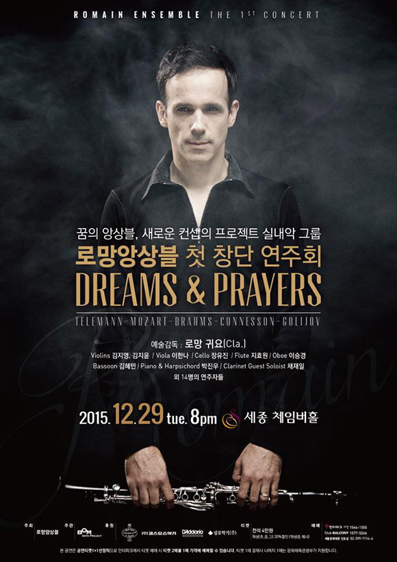 Romain Guyot 在欧洲室内管弦乐团演奏多年,2008 年成为该乐团首席单簧管演奏家。16 岁时,Romain 被任命为欧盟青年交响乐团首席单簧管,克劳迪奥·阿巴多担任当时的乐团指挥。 五年后,在 1991 年,他又被任命为巴黎国家歌剧管弦乐团的首席单簧管。1996 年他荣获纽约举办的国际青年艺术家比赛大奖,这是青年独奏家最高荣誉之一。从此,Romain 就在欧洲、日本、韩国、南非和美国进行独奏表演。
