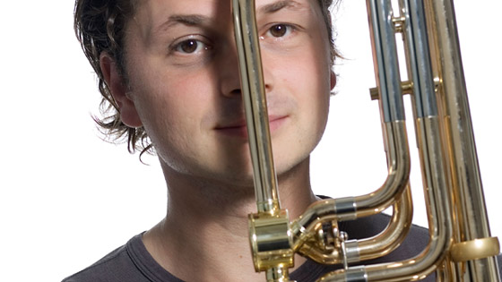答:我在小学的时候学习过两年竖笛(Recorder),这在原来的奥地利小学是一个传统。我来自一个奥地利的小村庄,那里有一个管乐团,经常在教堂和其他一些场合演奏。受到这个管乐团影响,我开始学习小号,两年后有学习过上低音号,最后开始正式学习长号。在我18岁时,我才开始接触低音长号,原因是我那时的高音区不是很好。换到低音长号后,我的演奏就越来越好了。但我演奏爵士乐或其它音乐形式的时候,也会吹次中音长号。
