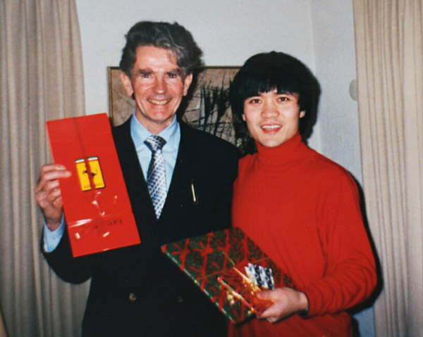 经菲利普·琼斯的帮助和精心安排,我于1988年初去到伦敦跟随菲利普·琼斯及其他一些小号名师们继续深造。曾先后获得了伦敦市政厅音乐与戏剧学院(Guildhall School of Music and Drama)、伦敦大学歌德史密斯学院(London University, Goldsmith College)及伦敦皇家音乐学院(Royal College of Music,London)的毕业文凭。这些都要感谢我的恩师菲利普·琼斯先生!记得我刚到伦敦时连小号都没有(因为我当时用的小号是属于中央音乐学院的,离校时已归还了)。我省吃俭用地从生活费里攒了点钱,准备买一支二手的小号。菲利普·琼斯知道此事后对我说,他的所有乐器都买了(当时他已经告别演奏生涯,专注音乐教育和一些与音乐有关的社会活动),只剩下一支巴哈牌的C调小号,如果我感兴趣的话可以便宜卖给我。我很高兴地对他说,这支小号我买定了。