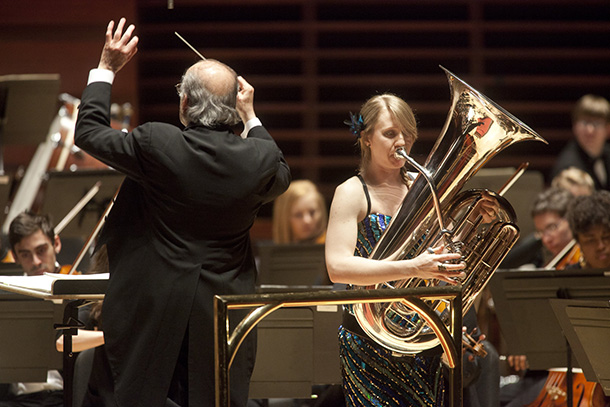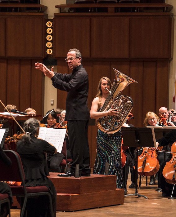 简兹:这要由指挥决定。今年1月的“维也纳音乐节”上,在演奏很多曲子的时候都用了雅马哈的F调大号。现在的音乐总监雅尼克·涅采-西格英(Yannick Nézet-Séguin)用德国的扁键小号,或者小一点的长号,这种时候也会让我用F调大号。这次日本巡演中用F调大号演奏了布鲁克纳第四浪漫交响曲。 ——用F调大号演奏布鲁克纳的机会在美国多吗?