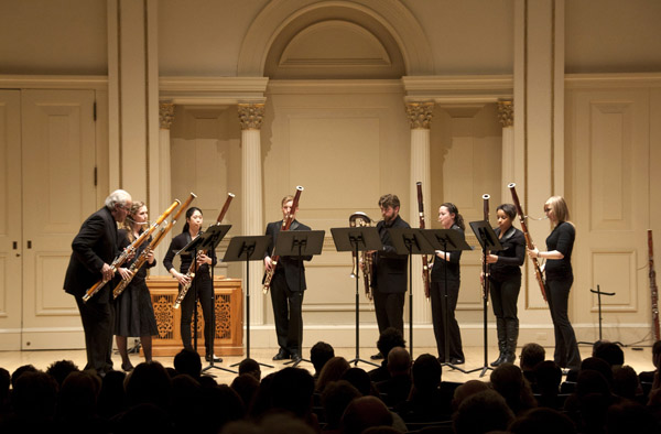 事实上,专门为巴松管而作的曲目也不在少数,像是莫扎特相传就为巴松管写下四首协奏曲,而目前只有一首K191保存下来,而浪漫时期作曲家韦伯(Karl Maria von Weber)也为巴松管与乐团写下《行板与匈牙利回旋曲,Op. 35》、《F大调巴松管协奏曲,Op. 75》。到了二十世纪,专为巴松而写的独奏曲、室内重奏,以及协奏曲,更是如雨后春笋般地出现,就这一方面来看,其实很多音乐家都为巴松神秘、低沉的音色深深着迷,赋予它在舞台上尽情发挥的机会。