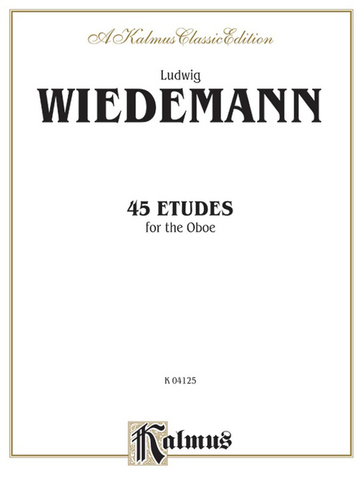 维德曼(L.Wiedemann )《45首双簧管练习曲》也从众多练习曲中脱颖而出为大多数演奏者所选用。这部练习曲最初有两册组成,第一册30首,第二册15首,也是运用不同的调性写成,但是并没有像费林练习曲那样有规律可循,所以后人也有将这部练习曲打乱顺序摘编成37首练习曲供演奏者选用。维德曼练习曲中对各种节奏以及相应节奏的连断关系有针对练习,尤其偏爱3/8、6/8、9/8这样以八分音符为一拍的节奏。旋律上相对比较简单,比较适合初学者。