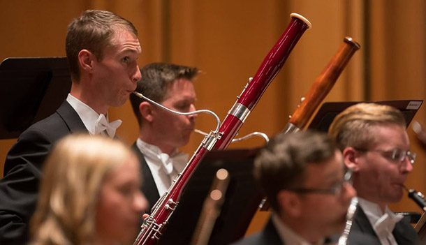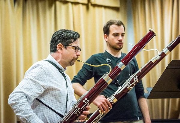 在呼气时,用腹肌和两肋以及腰部肌肉控制气流,使气流自然地从腹腔内直接进入吹口,不要有任何阻碍。轻轻地和慢慢地将气呼出来,控制好气流,使气流均匀地呼出。在初级阶段,演奏者首先应该练习呼吸,然后将气息直接送人吹口,使簧片振动而产生需要的音响。巴松的强弱音量是根据气流通过簧片的多少和缓急来决定的,因为簧片的封口始终是打开的,演奏者可以在不改变音调的情况下来控制强弱音量。