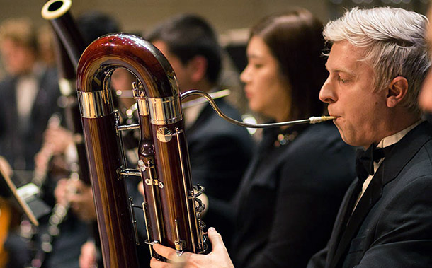 巴松的发音与实际记谱相符,一般采用低音谱号、次中音谱号记谱,偶尔也使用高音谱号。大管是一种极为出色的独奏乐器,常常在演奏中担任独奏(solo),它浑厚圆润的音色表现出了独特的艺术魅力。要想吹奏出集中、有光泽、弹性好且穿透力强的理想音色,口型和气息的控制是至关重要的。正确的口型,良好的胸腹式呼吸和气息支持对音色的质量起着非常重要的作用。