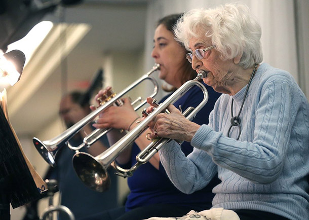 一般铜管乐器所使用的呼吸方法为“胸腹式”呼吸法,即“横膈膜”呼吸法。要知道我们腹部的横隔膜被称作“不随意运动的肌肉”。无论我们干什么他都在工作,不受我们意识的控制。但是即便如此,我们也必须学会去控制它,因为小号演奏就是靠气息和呼吸控制的。对于演奏者来说,气息的运用和一般的呼吸时不一样的。从解剖学来说,胸腔有肋骨作为支架,即使吸气吸得再饱满也会受到肋骨支架的制约;相反,腹腔是没有骨骼支架的,能吸入的气息量比腹腔多的多。除此之外,将气息集中于腹部能更好地对其进行控制。这时腹部的作用就好像水泵一样,能给演奏带来源源不断的动力,减少嘴部和身体其他部分的压力,使耐力和灵巧度得到提升。演奏者只有在知道这些原理后才能明确气息使用的一个大的方向,才有可能自如地运用气息来进行演奏。