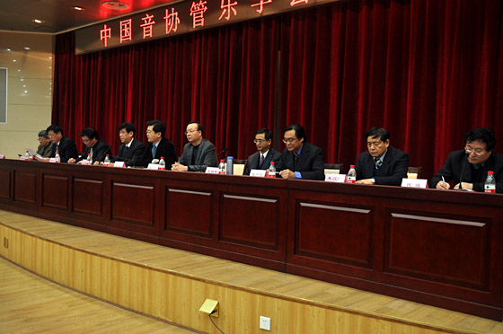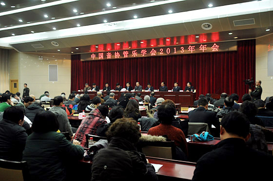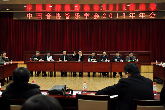 1月19日上午,中国音协管乐学会2013年年会在解放军军乐团新排练厅举行。中国文联办公室副主任王仁刚、中国音协副秘书长王建国、管乐学会主席于海,副主席赵瑞林、戴中晖、孙铭红、姜斯文、朱汉城、魏煌、席伟泷,解放军军乐团团长邹锐,学会高级顾问、来自全国各地的管乐学会会长、驻京的管乐专家、学会理事、团体会员代表和多家管乐器制造经销商代表等近200人出席了本次年会。