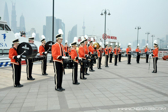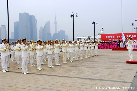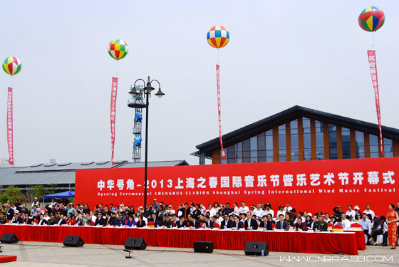 今天(4月29日)上午,中华号角-2013上海之春国际音乐节管乐艺术节开幕,中外管乐队齐聚在杨浦滨江发展带的秦皇岛“世博水门”,登上游船为市民游客奉上了一场精彩的浦江大巡游。