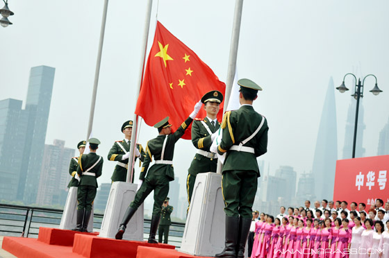 简短的开幕仪式后,本届艺术节最大亮点活动——中外管乐团队浦江大巡游举行。黄浦江畔,20余支中外管乐团队从秦皇岛路上的世博水门分乘8艘游船,沿着外滩和十六铺码头沿线奏响激动人心的号角,呈上观众耳熟能详的《歌唱祖国》、《老朋友进行曲》等经典曲目,引得市民游客纷纷驻足观看。