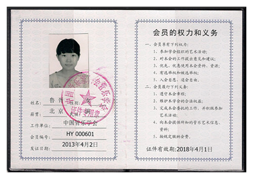 中国管乐学会会员证(里)