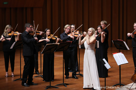 EMI签约小号艺术家艾莉森·巴尔松5月20日在国家大剧院结束了今年中国巡演的第一站。当晚音乐会巴尔松的出场可用惊艳来形容,但她一演奏就能让人马上开始关注音乐本身,而非仅停留在她那出众的外形气质上。苏格兰弦乐团颇具特色的站立式演奏,令每个人都如演奏家般魅力四射,闭上眼细心聆听,又深感彼此交融和谐。音乐如清泉淙淙漾入心田,甘之如饴。而巴尔松则是当晚舞台最闪耀的焦点,小号黄金版温润的音色与清澈透明的弦乐相得益彰,红裙炙烈如火,白裙圣洁无暇,怎一个美字了得。