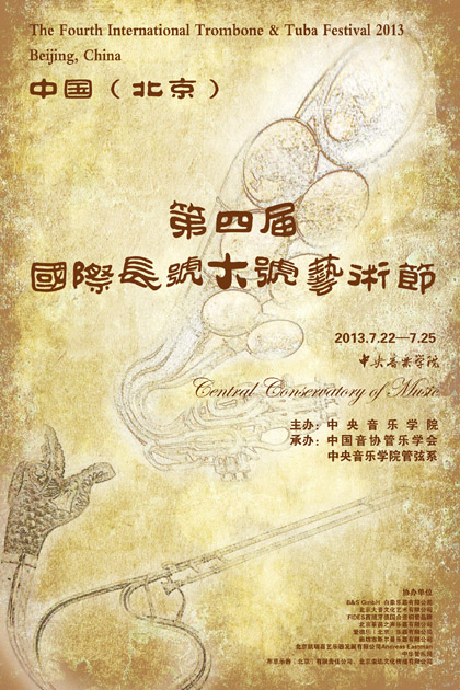 中央音乐学院主办、中国音协管乐学会协办、中央音乐学院管弦系承办的中国北京第四届国际长号大号艺术节即将于2013年7月22—25日在中央音乐学院举行,衷心欢迎国内外爱好、欣赏铜管器乐演奏的朋友们前来参加。