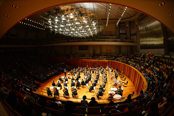 为了平衡中外音乐的多种审美需要,张治荣指挥还为音乐会的上半场选取了两首中国作品,其一为作曲家于建芳改编的瑶族舞曲,其二为作曲家王和声于2008年创作的《迎宾进行曲》。这是两首风格迥异的管乐作品:前者突出了木管乐器悠扬甜美的乐器特色,木管组对双簧管的跟进重复、单簧管的音乐对比和变化、音乐主题的多样变奏与重复,平添了中华民族爱好和平、与友交好的大国风范。《迎宾进行曲》表达着作曲家努力实现中国梦的美好祝福,三声中部选取了《茉莉花》作为主题音调,这一音乐形象在各乐器组上依次呈现,于是花开大地的美景粲然映入观众的脑海。
