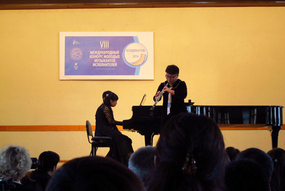 2014年4月1日至4月8日在俄罗斯Vladivostok举行了第八届国际青年演奏家比赛,中央音乐学院附中管乐学科师生在学科主任金京春的带领下赴俄参赛,他本人也应大赛组委会的邀请担任管乐评委。同学们经过积极的准备,顽强的拼搏最终凭借出色的发挥获得了优异的成绩。比赛结束后,本次比赛评委会主席、莫斯科柴可夫斯基音乐学院著名管乐教育家波波夫教授难以抑制激动的心情,称赞附中管乐选手“你们是一群来自中国的天才!”。来自韩国和日本的管乐评委也对附中选手的优异表现赞不绝口!俄罗斯Vladivostok国际青少年比赛是由俄罗斯文化部,Vladivostok市政府主办的、远东地区最大的国际音乐比赛,包含有管乐各专业比赛项目,每两年举行一次。本届比赛共有来自俄罗斯、中国、乌兹别克斯坦、韩国、日本、等国家的300多名专业选手参赛。