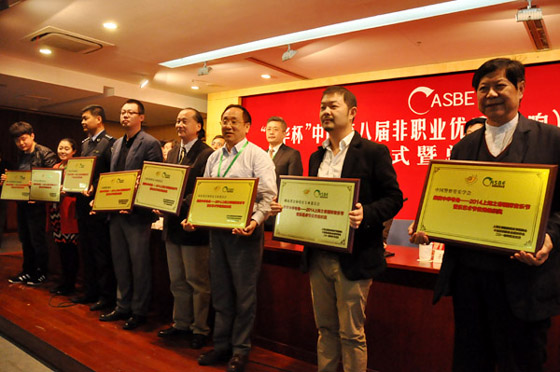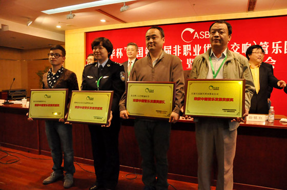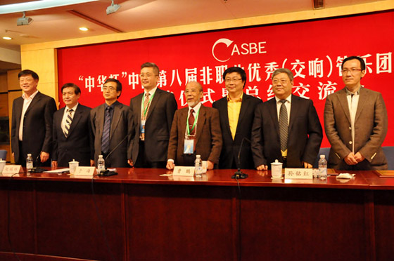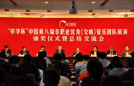 2014“中华杯”中国第八届非职业(交响)管乐团队展演颁奖仪式暨终结交流会于5月3日在上海沪东工人文化宫召开。交流会邀请到了本次比赛评委、指挥家曹鹏,卞祖善和作曲家陈丹,管乐学会主席于海做了精彩深刻的点评和管乐团发展建议。最后由管乐学会副主席赵瑞林公布以下成绩(本次参加展演的乐团达到69支,也创了历年数量之最):
