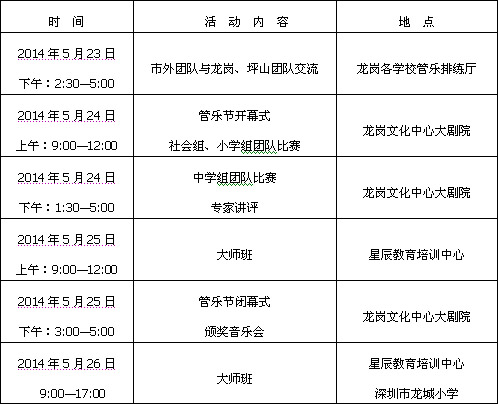 活动名称:2014广东(国际)管乐艺术节系列活动暨“非凡杯”2014深圳龙岗首届(交响)管乐团队邀请赛