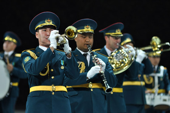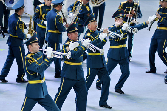 来自哈萨克斯坦共和国的国防部中央军乐团成立于1995年,该团继承和发扬优良历史传统,最擅长的是创作并演奏军事题材作品。他们经常参加国家和军队重要的司礼演奏活动,包括最高级别的国际交流演出活动、历年的阅兵式演奏以及国内各个地区的巡演。开幕式上,他们演奏了《阿拉木图》、《阿尔曼格利德》、《哈萨克斯坦进行曲》、《拜科努尔》等具有浓郁哈萨克民族风格的音乐作品。