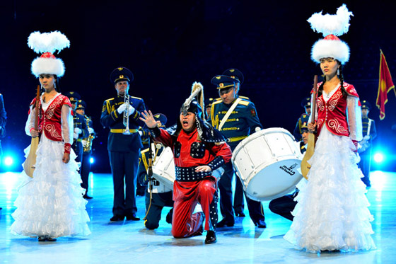 吉尔吉斯斯坦军队中央俱乐部军乐团具有悠久历史,前身是成立于1941年的潘菲洛夫军乐队。作为国家军乐团,他们长期承担国家典礼、国宾迎送、大型阅兵式、大型集会等重大的司礼演奏任务。该团拥有吉尔吉斯斯坦最优秀的音乐家,在这次开幕式上,他们演奏了独具特色的库姆兹弹奏《舍赫列扎达姑娘》、《赛马》、《史诗玛纳斯》、《奔腾》和《吉尔吉斯斯坦歌曲联奏》。