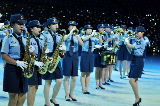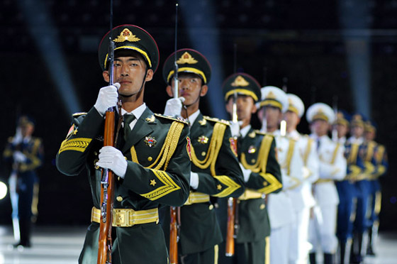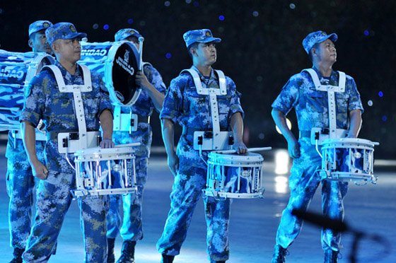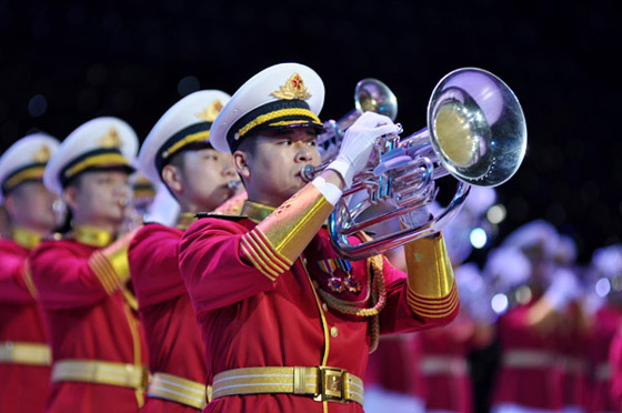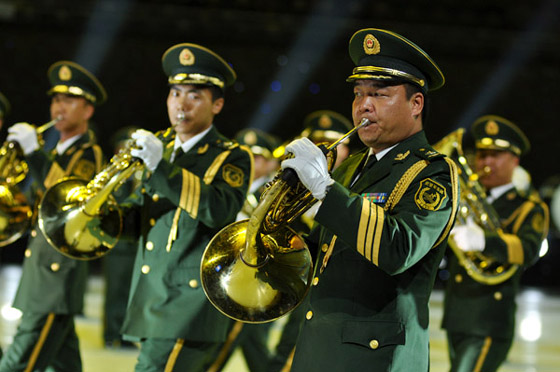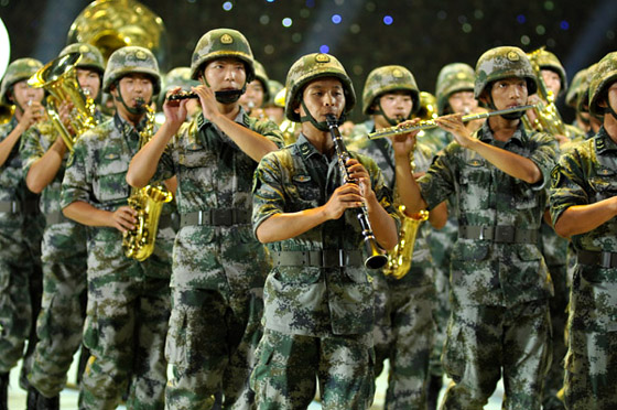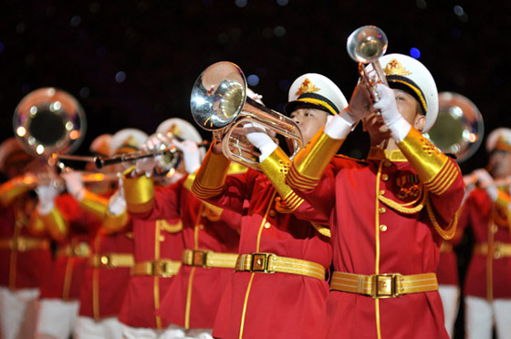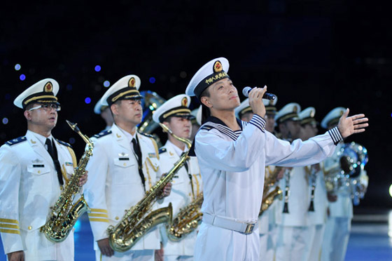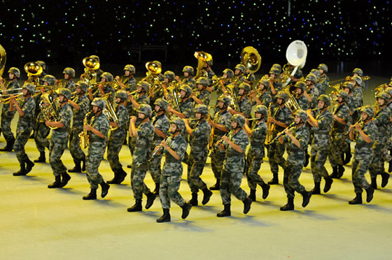 与四支来自远方的外军乐队进行交替演奏的,是我军派出的五支军乐团队:中国人民解放军军乐团、中国海军军乐团、中国武警军乐团、中国空军战士军乐团和北京军区战士军乐队。开幕式上,他们分别演奏了《军威进行曲》、《咱当兵的人》、《蓝色的旋律》、《我爱祖国的蓝天》、《首都卫士》、《无名英雄》、《阿坝妹子》、《青春舞曲》以及《歌唱祖国》。中国人民解放军陆海空三军仪仗队官兵以飒爽的英姿和严整而灵动的队列编排参加了表演,为军乐演奏增添了亮色。