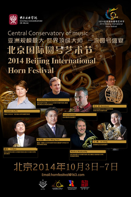 由中央音乐学院主办、著名旅德华人圆号演奏家韩小明先生担任艺术总监的“北京国际圆号艺术节 Beijing International Horn Festival”,自2012年创办至今,已成为一个国际音乐交流的盛会。第三届北京国际圆号艺术节将于2014年10月3日-7日在中央音乐学院举办。