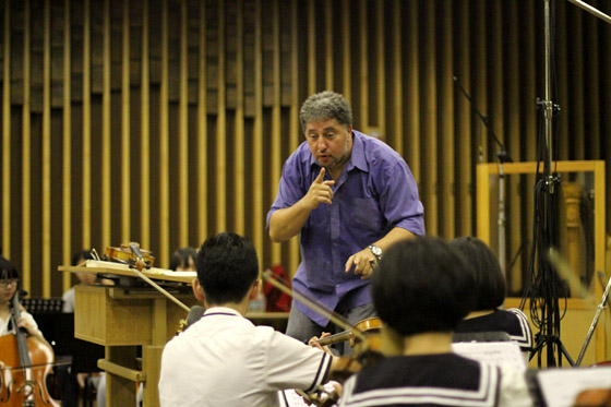 捷克国家交响乐团指挥马利克在捷克国家交响乐团排练厅为铁一中乐团指导排练