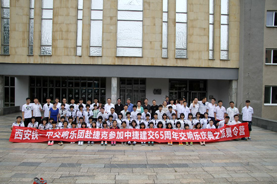 为庆祝中国—捷克建交65周年,西安铁一中学交响乐团、捷克国家交响乐团,于7月30日在捷克布拉格—捷克国家音乐博物馆演出厅联合举办“中捷建交65周年庆典音乐会”。