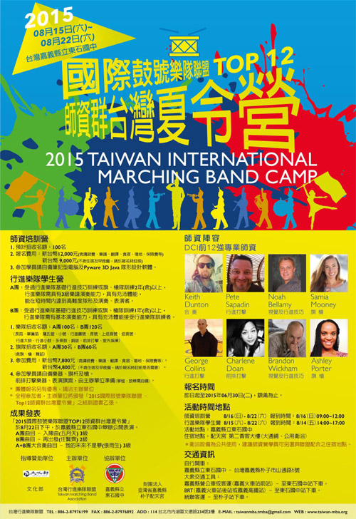 2015国际鼓号乐队联盟Top12师资群台湾夏令营课程表下载
