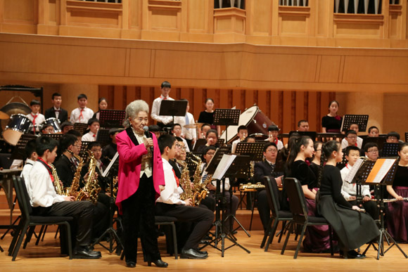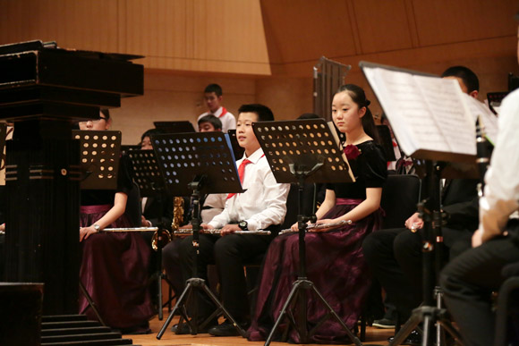 由包头市少年宫管乐团与我团学生共同演奏的《东方明信片》、《草原晨曲》等作品,默契的配合与精彩的演奏,赢得观众的热烈掌声。