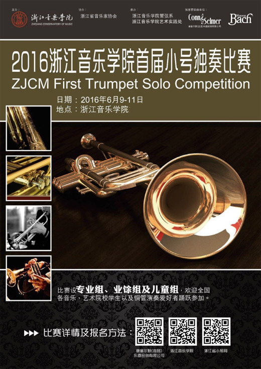 为提升浙江音乐学院在全国专业院校影响力,提高管乐以及铜管乐类乐器教学和演奏水平,促进管乐艺术文化事业在我省的繁荣发展,根据《浙江音乐学院(筹)关于“十三五”期间深化人才培养模式改革的意见》(浙音【2015】52号)文件指示精神,拟于2016年6月9日至年6月11日在浙江音乐学院举办“2016浙江音乐学院首届小号独奏比赛”活动。