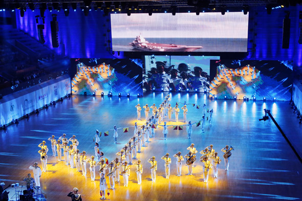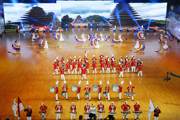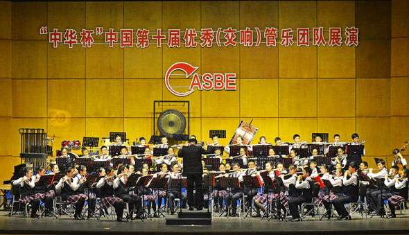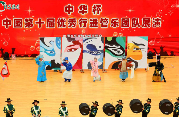 优秀行进管乐团队展演在上海复旦大学正大体育馆举行