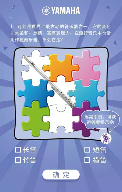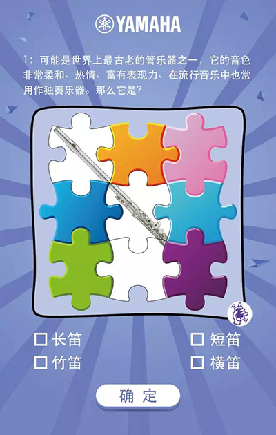 根据图中问题提示,以及看到的部分乐器局部选择是何种乐器,答对即得分。