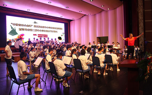 该活动开幕式于7月26日在青岛人民会堂举行,千余名中小学生参与其中,乐享管乐盛宴。开幕式后举行了管乐音乐会,精彩演奏赢得了现场观众的热烈掌声。音乐会彰显了管乐艺术的普及性和教育性,上半场由担任本届评委的国内顶级管乐大师进行表演,极富动感和视听冲击力;下半场由青岛市各中小学管乐团进行合奏展示,来自市实验小学、嘉峪关学校、鞍山二路小学、青大附中、崂山新世纪学校和城阳实验中学六所学校的管乐团轮番精彩对决,各具特色、富有青春朝气。当中国管乐学会主席、著名指挥家于海指挥六所学校管乐团联袂演奏《红军不怕远征难》时,全场响起壮美的旋律和管乐独具的磅礴气势,将整场管乐音乐会推向高潮。