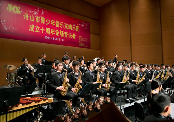 2016年8月14日晚,舟山市青少年管乐交响乐团成立十周年专场音乐会在舟山市普陀区保利大剧院成功演出。