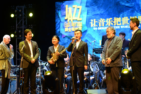10月26日晚7:30分,在上海商城剧院举行了《让音乐把世界照亮》大卫·里布曼与上海音乐学院爵士乐团专场音乐会。该场音乐会是2016中国(上海)现代爵士乐教学研讨会闭幕音乐会,由国际一流的爵士乐大师与上海音乐学院爵士乐团共同为大家呈现的爵士全明星组合阵容强大。在爵士大乐团演奏最后一首带有拉丁风格的《Sandunga》时,演奏家们与观众们一起拍手互动起来,大家都不由得跟着美妙的旋律舞动着身体,这时从远处有两组巴西鼓队敲打着气势恢宏的节奏走向观众。全场一片欢呼雀跃,赢得了大家的阵阵掌声。本场音乐会除了阵容强大之外它还是一场慈善主题音乐会,上音现打系的老师们私人出资捐赠了一批乐器给盛华盲人音乐学院的学生。希望帮助他们实现音乐梦想,同时呼吁社会的慈善意识。