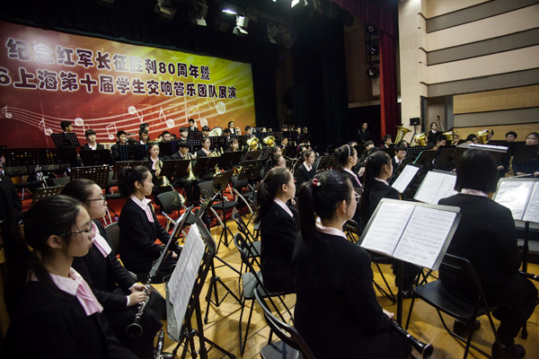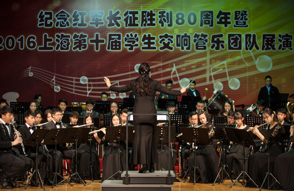 12月11日,由上海市音乐家协会和上海市科技艺术中心联合主办的“纪念红军长征胜利80周年暨2016上海第十届学生交响管乐团队展演”在普陀少年城隆重举行。中国音协管乐学会副主席、上海音协管乐专业委员会主任、上海音乐学院教授孙铭红,中国音协管乐学会高级顾问、指挥家程寿昌,华东师范大学终身教授侯润宇,国家一级指挥、上海音乐学院兼职教授王永吉、林有声,上海音协副主席、上海爱乐乐团副团长、青年指挥家张亮,中国音协管乐学会理事、上海音协管乐专委会副主任徐荣作为本次大赛的评委莅临现场。