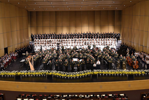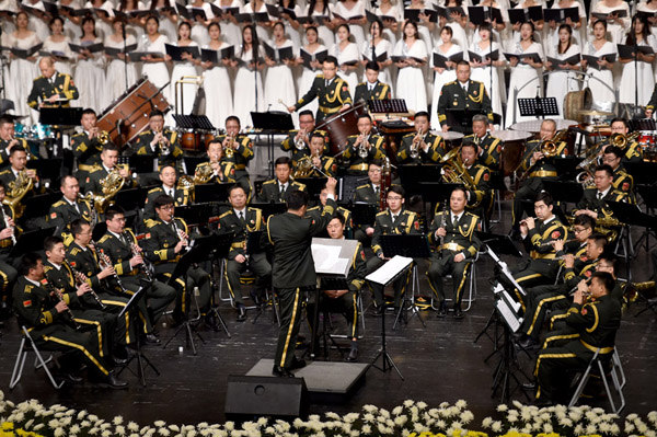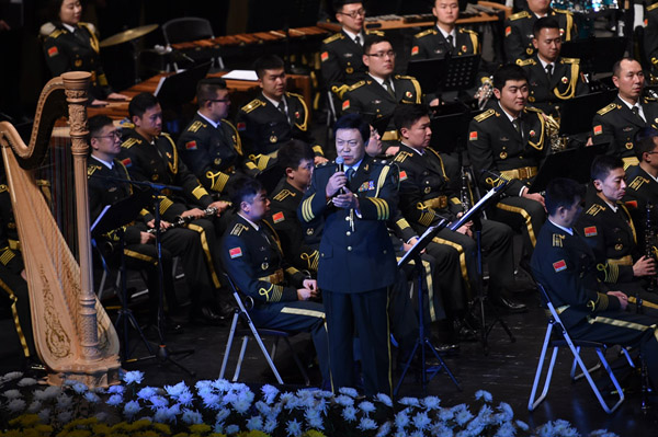 解放军军乐团和助奏乐队一起演奏《强军战歌》