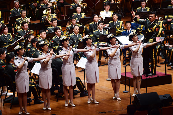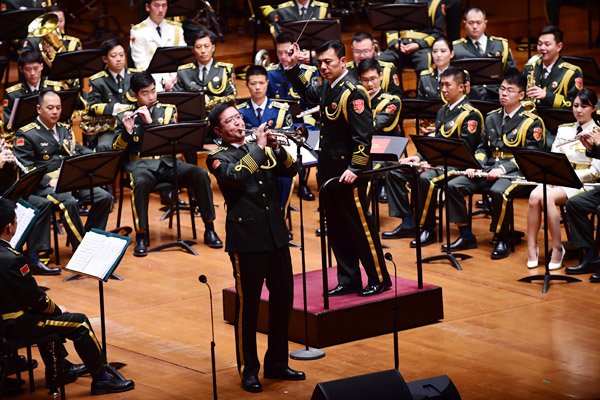 音乐会临近尾声,解放军军乐团副团长兼现场指挥张海峰说道:中国人民解放军,是我们伟大的中国共产党缔造的人民军队,中国人民解放军军乐团更是我党、我军的一把“军乐利剑”,人民军队忠诚党和人民,一切行动听指挥!才能“剑锋所指,所向披靡!”