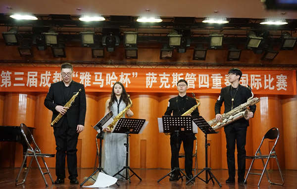 第三届成都“雅马哈”杯萨克斯管四重奏国际比赛于2017年12月16日、17日在四川音乐学院聂耳音乐厅举行。来自四川本地和北京、上海、武汉、长春、贵阳、肇庆等地的17支专业、业余队伍参加了这次比赛。