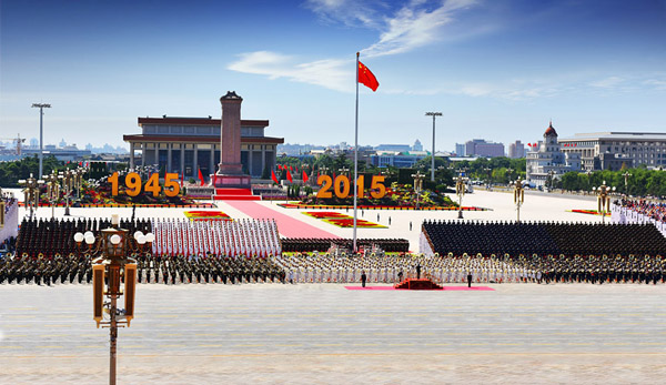 9.3大阅兵联合军乐团在天安门前接受国家领导人检阅