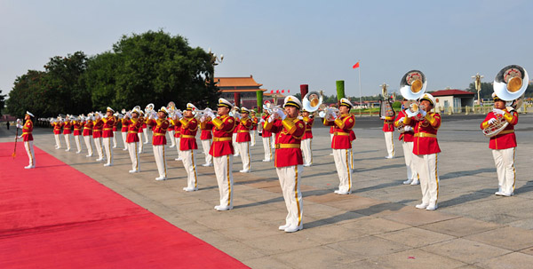 在外国元首访华欢迎仪式上行进吹奏表演